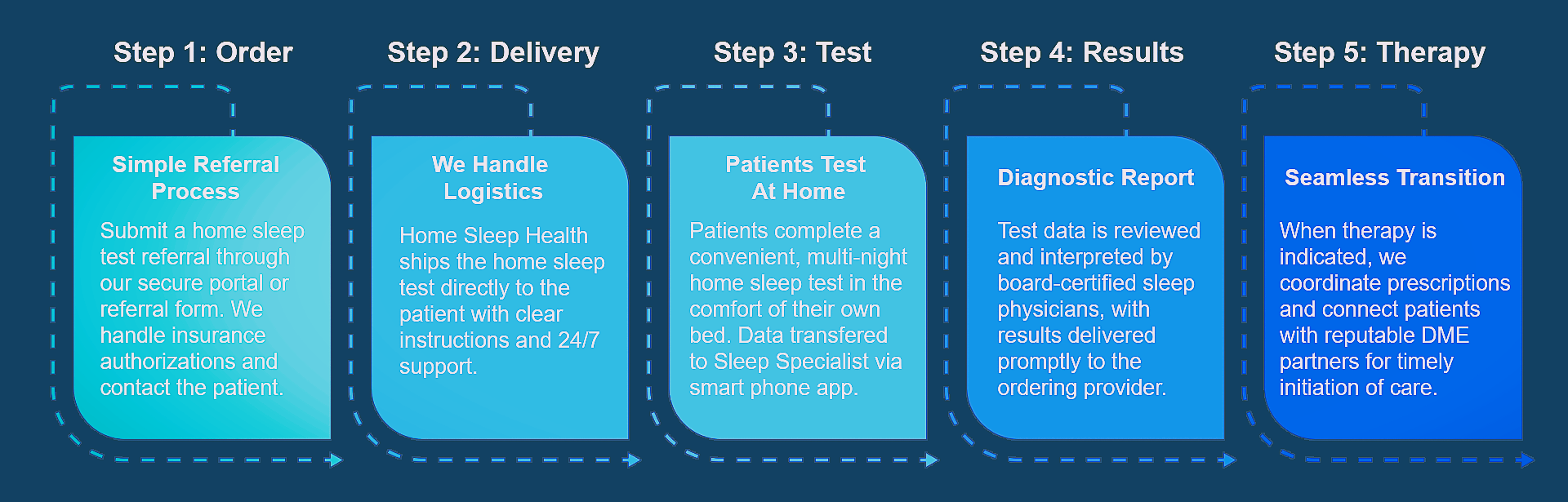 From referral through therapy, we manage testing, interpretation, prescriptions, DME coordination, and patient follow-up—so your team doesn’t have to.